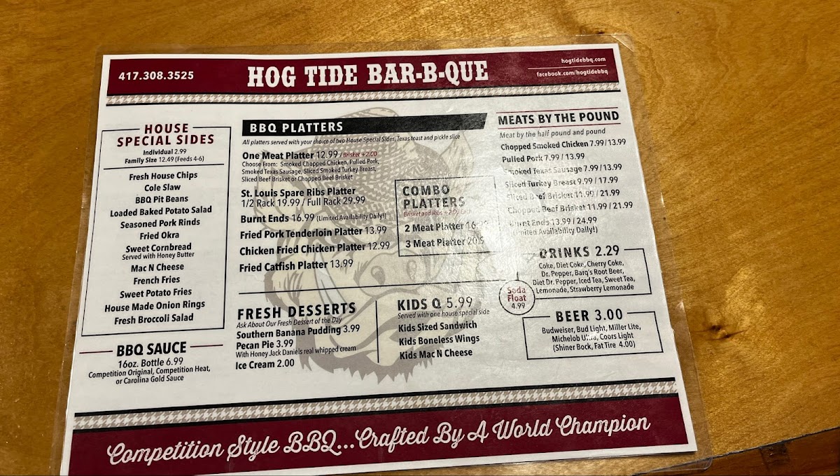 Introducing the menu of Hog Tide Bar-B-Que, where BBQ lovers find their culinary sanctuary in Aurora, MO! This vibrant eatery, nestled at 22020 S Wolfe Rd, is celebrated for its mouthwatering offerings and exceptional hospitality.